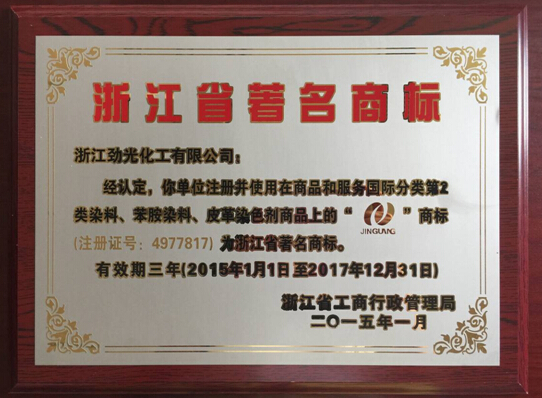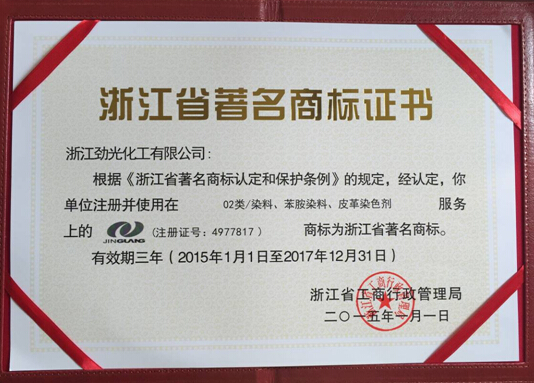 浙江劲光化工有限公司“劲光”商标荣获浙江省著名商标