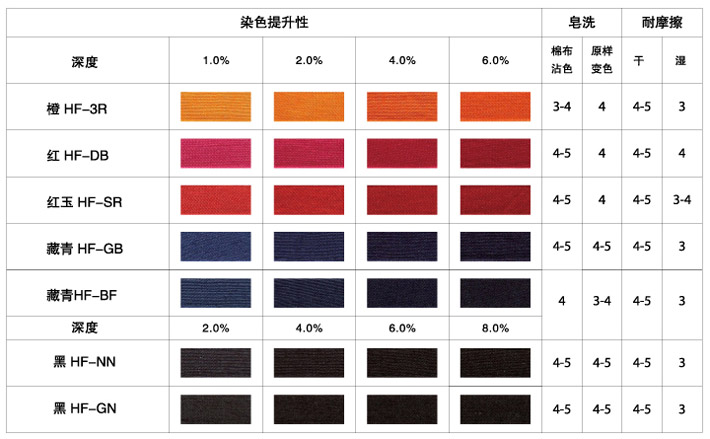 ● 优异的提升性,填补了普通活性染深色上的不足;