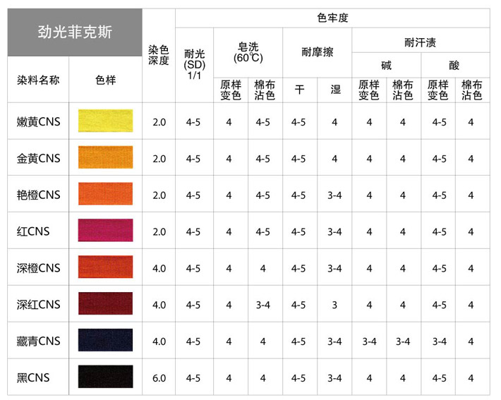 CNS系列产品是我公司过期研发成功适合于纤维素锦棉混纺织物-浴法染色的染料,该系列具有以下特性: